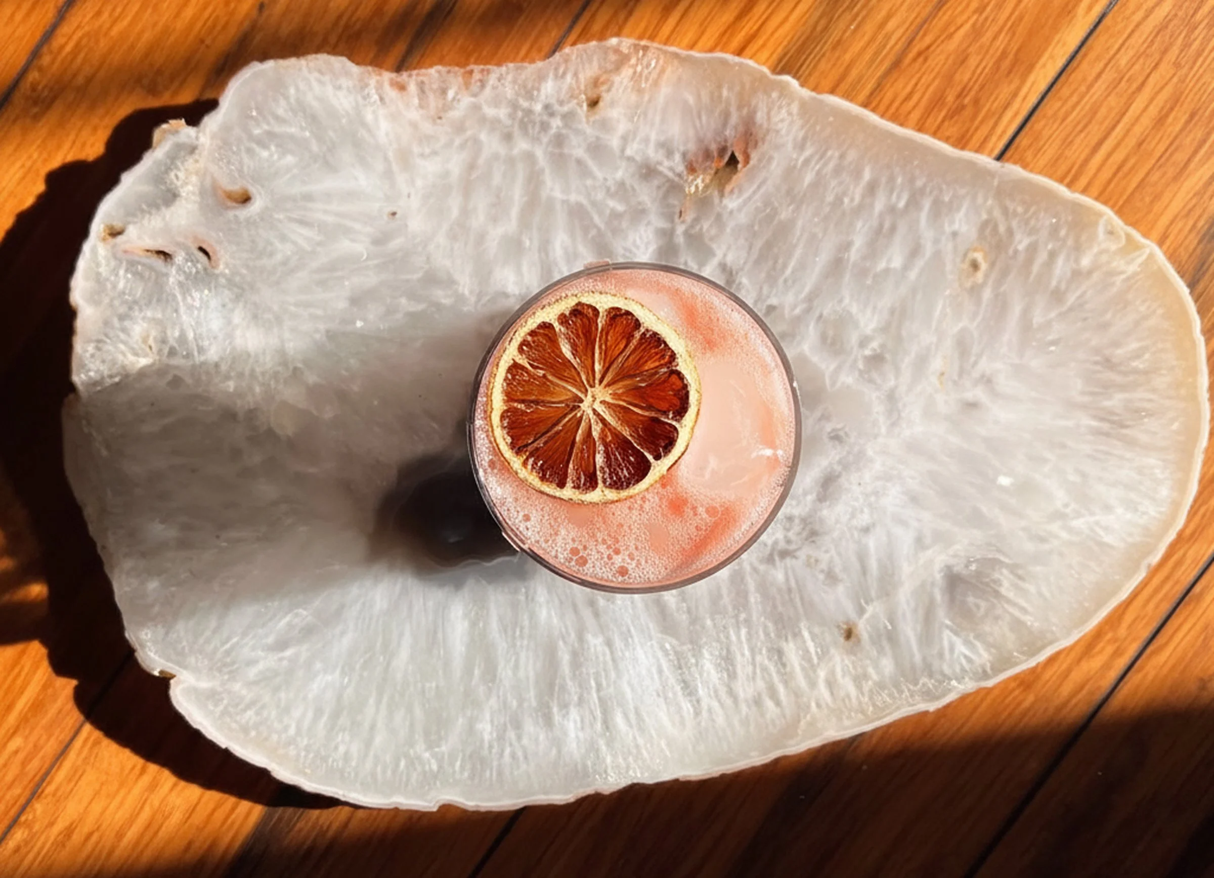Cold-Pressed Grapefruit Juice, Vodka, Lemon Juice, Elderflower Liqueur.